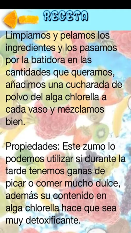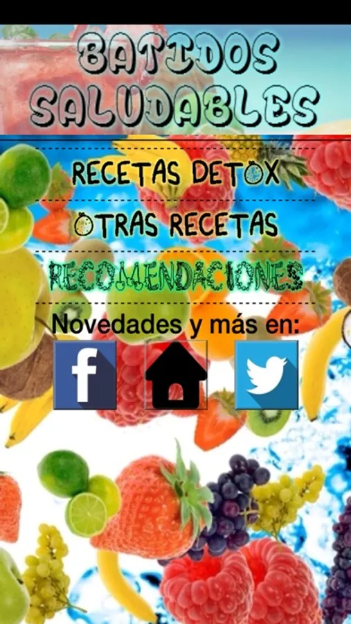 La salud es lo primero y hemos desarrollado esta app para ayudarte con tu dieta, incluyendo ricos y nutritivos batidos de frutas y verduras a tu alimentación. Simplemente selecciona el batido que quieras preparar y se abrirá la pantalla con una imágen en grande de la presentación del mismo y su receta en las proporciones adecuadas. El contenido de la app se irá ampliando y actualizando periódicamente.