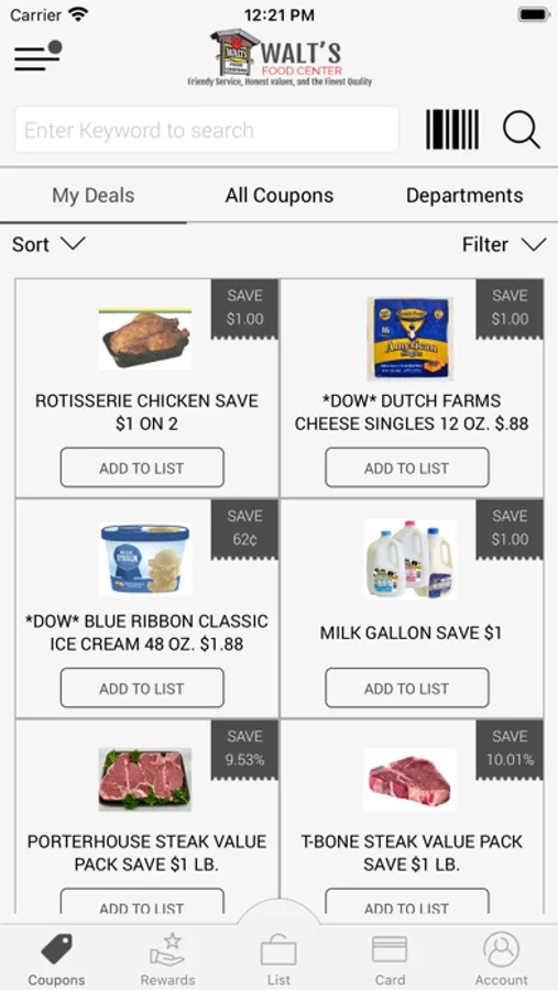 Claim as many coupons as you want with one simple scan! No more searching through mailers or printing out emails, Walts Foods is bringing rewards right to your mobile device!