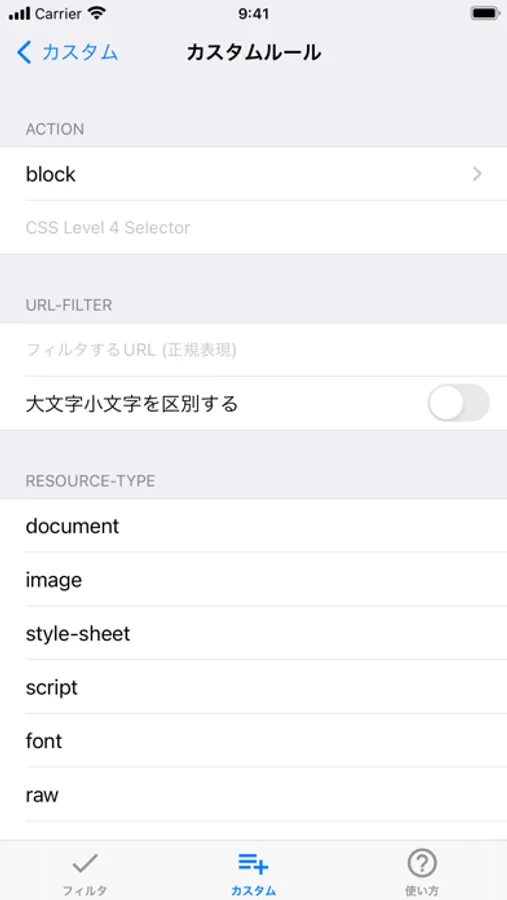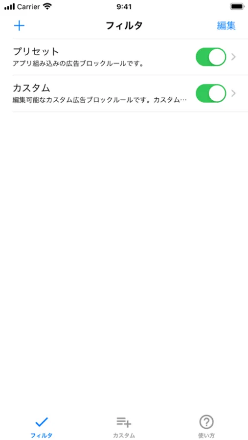 3. 同梱のフィルタリングルールの以外にカスタム広告ブロックルールを追加できます