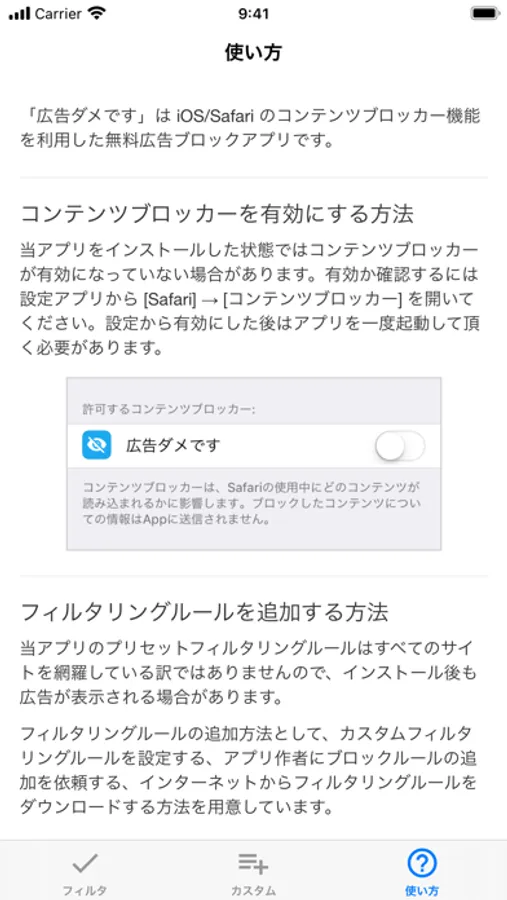 無料の広告ブロックアプリです。Safari の広告をブロックします。