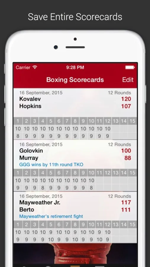Turn your iPhone/iPad/iPod Touch into a scorecard. The Boxing & MMA Scorecard is designed by fight fans for fight fans. It has a beautiful, yet simple user interface that gives you the feeling of a big fight atmosphere. This full-featured app will make you feel like you're a professional ringside judge.