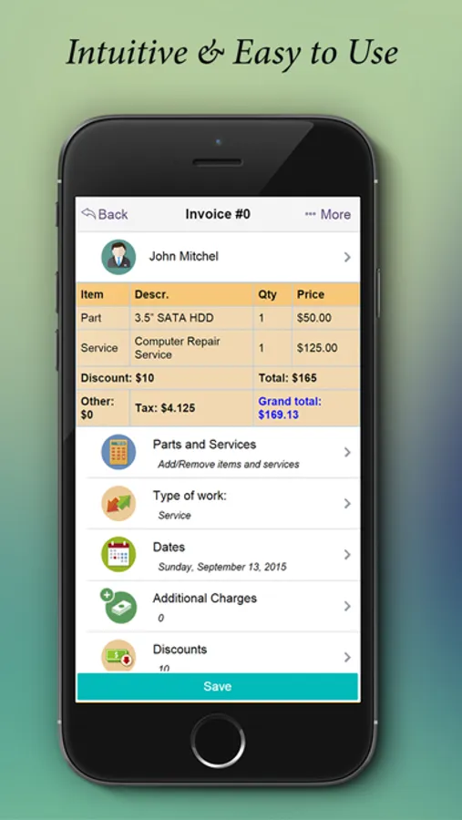 This app helps you create professional looking invoices and estimates in a timely manner.
