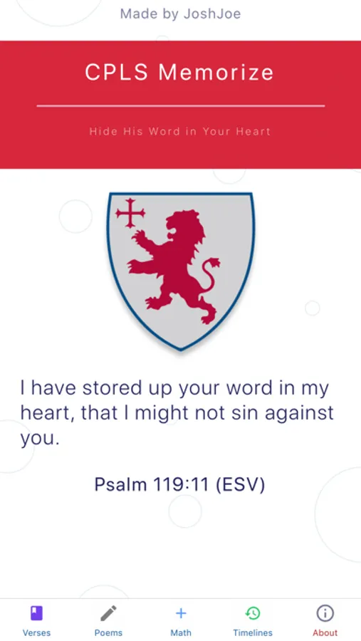 The app uses memory verses, poems and timeline events from CPLS's K-6th grade lists.