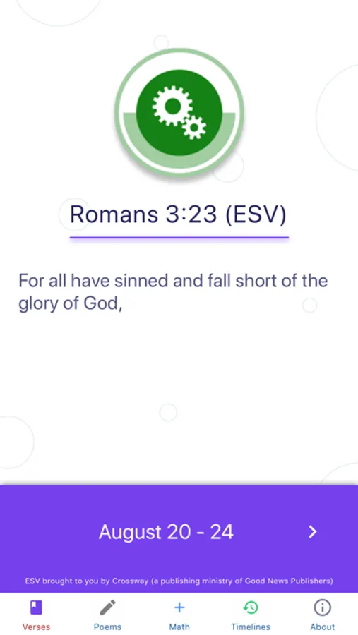 An app for weekly memory verses. This app automatically moves to the next week's verse so you always see the current weeks verse when you open the app.