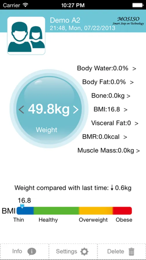 This application allows you to easily monitor essential health and fitness data for: Body Weight, Body Fat Rate, Body Water, Bone Mass, Muscle Mass, BMI, BMR and Visceral Fat. From the graphic displays, you can check changes in health trends.4Uhealth helps all our users stay on track for a healthier lifestyle.
