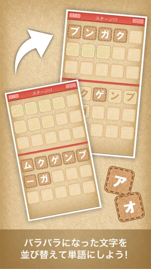 文字を組み合わせて単語を完成させる脳トレパズル!
