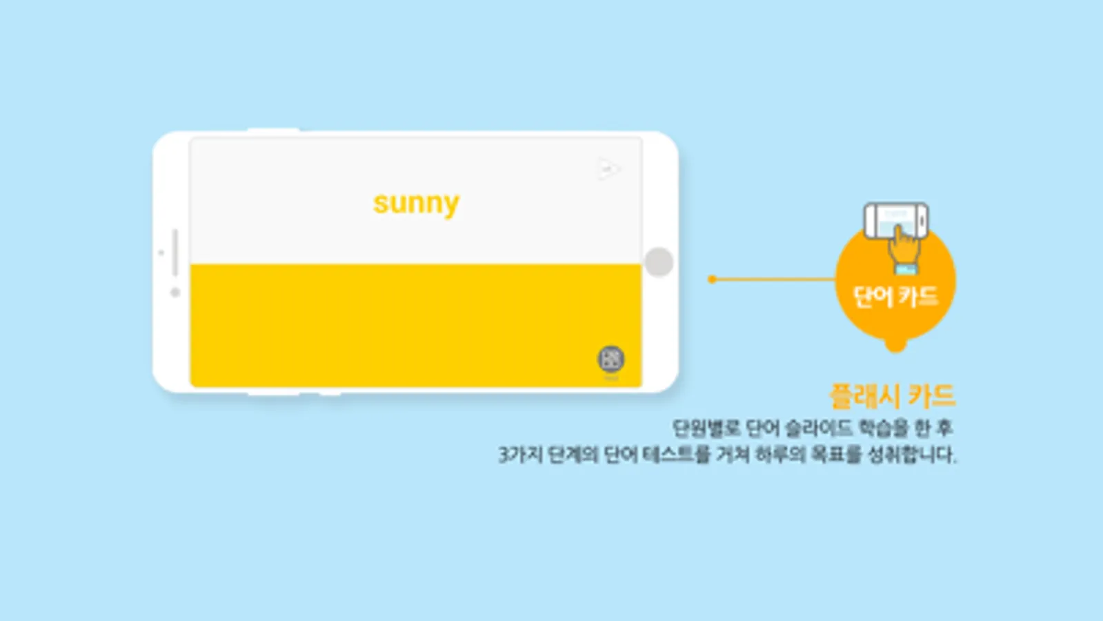 단원별로 단어 슬라이드 학습을 한 후 3가지 단계의 단어 테스트를 거쳐 하루의 목표를 성취합니다.