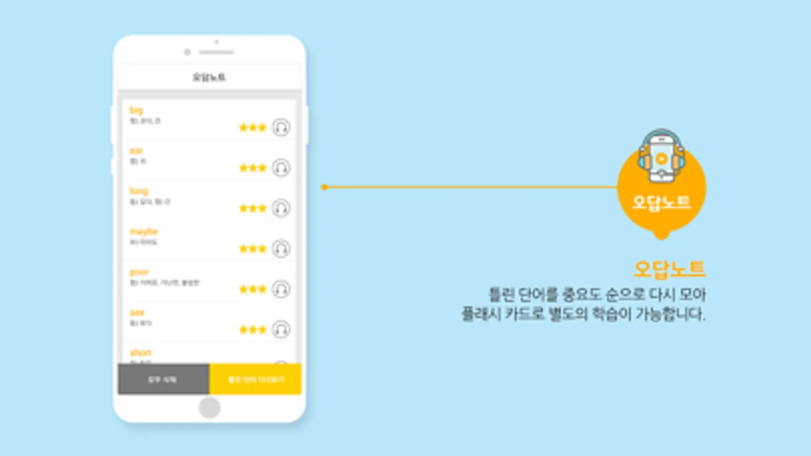 한 번 틀렸던 단어는 오답 노트에 별도로 슬라이드 학습을 할 수 있습니다.