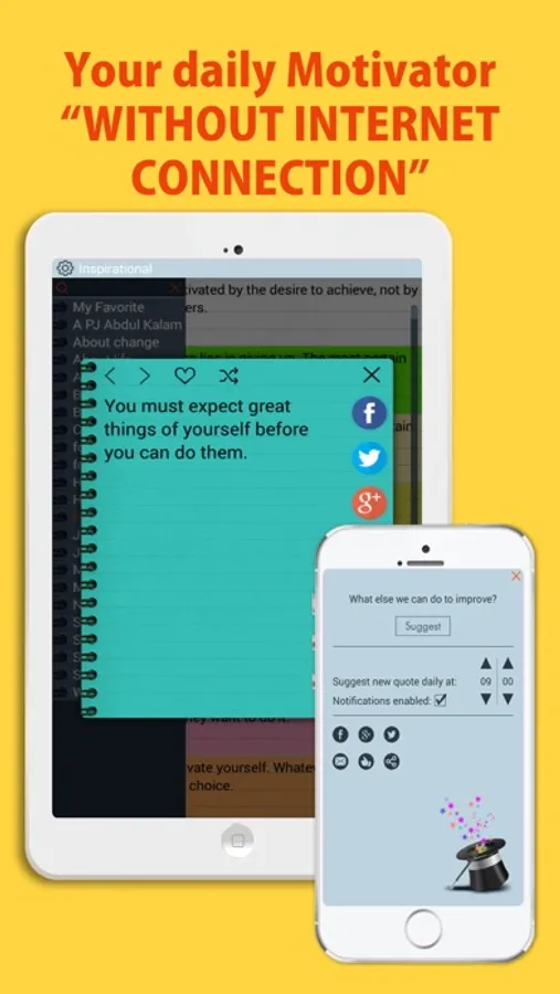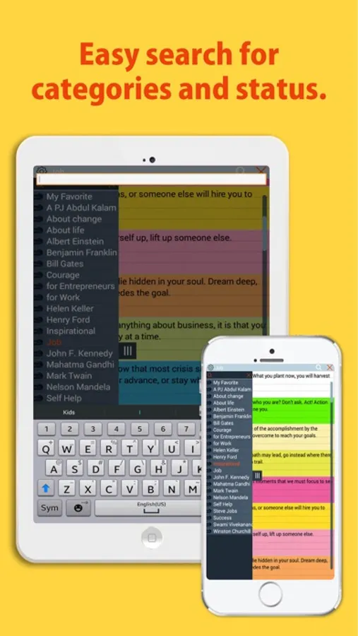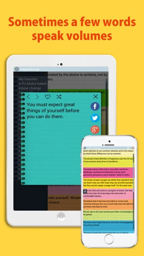 - 1000+ inspiration quotes from famous personalities and authors.