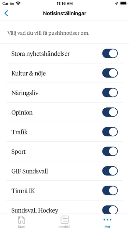 • Prenumerera på nyhetsnotiser om ditt favoritlag eller ämnen som intresserar dig – så hänger du alltid med.