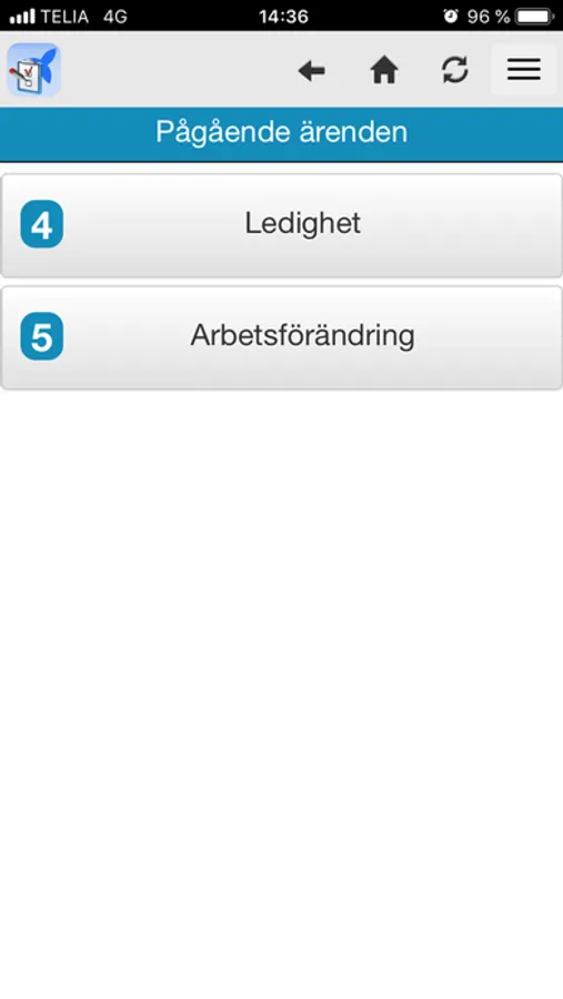 Du kan när det passar dig logga in via appen och se en tydlig översikt över dina aktuella ärenden som behöver hanteras. På startsidan får du en god överblick över antal olika ärenden som är aktuella och du kan där klicka dig vidare genom de olika kategorierna. Smidigt, enkelt och när det passar dig.