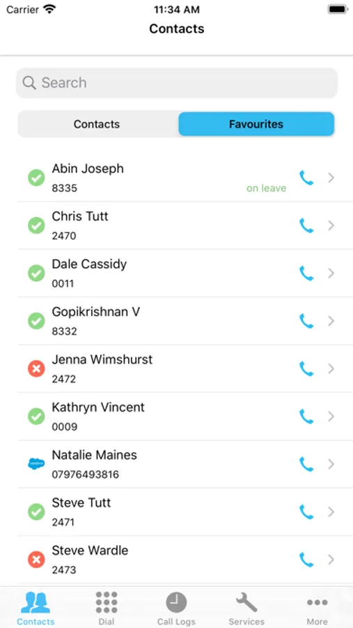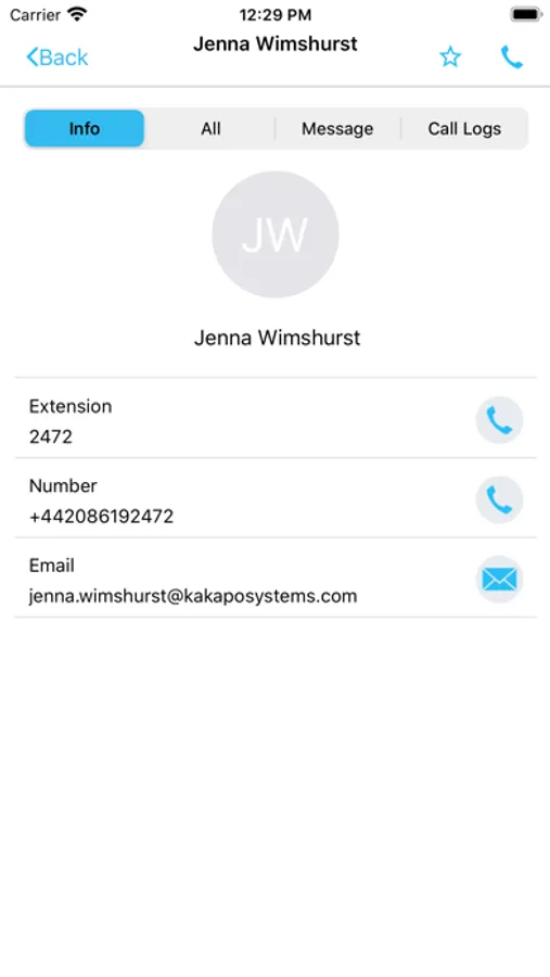 • Send SMS and Emails: Use the native apps to send SMS messages and Emails to contacts with a mobile number or email address in their profile