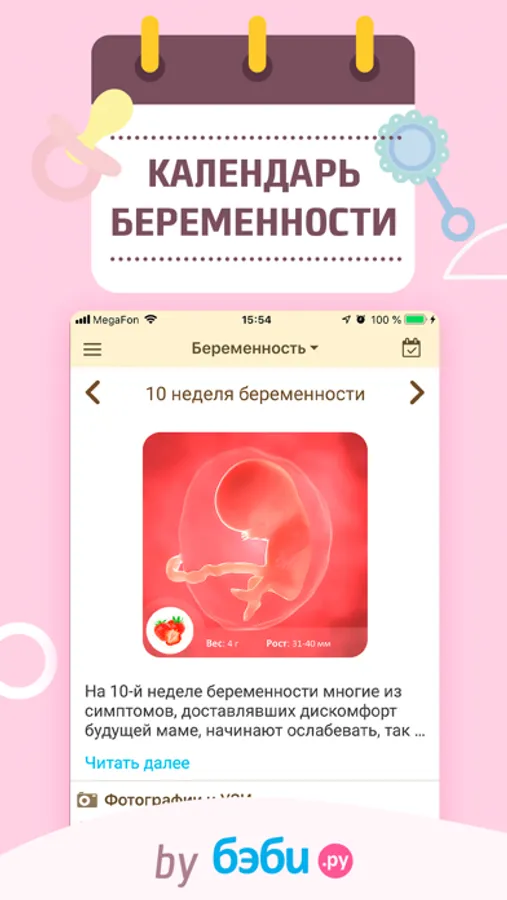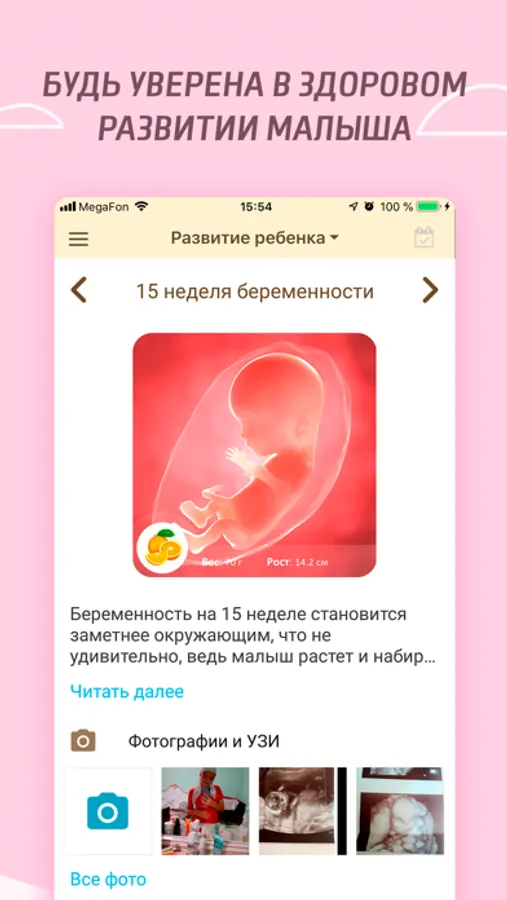 "В приложении очень крутой календарь беременности и календарь развития ребенка" /Ольга, 24 года/