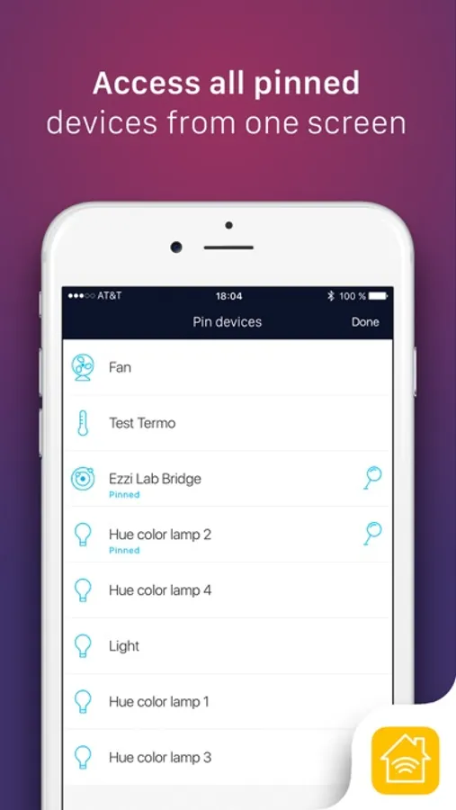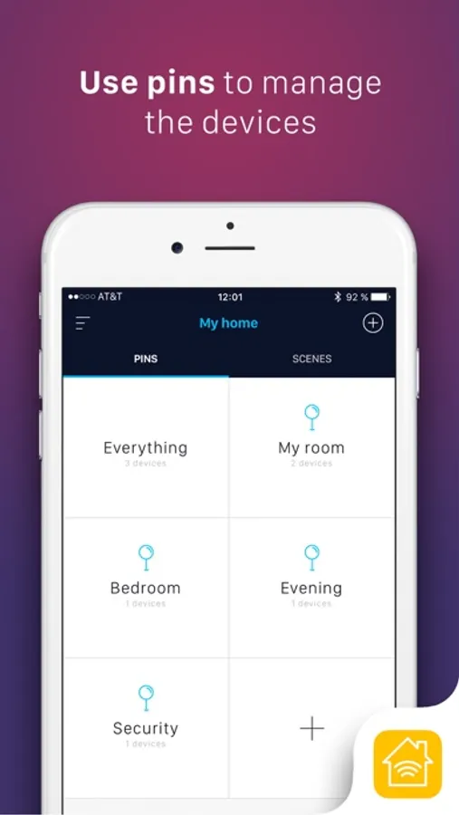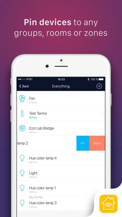 • Manage and organize the devices by collecting them into pins. A pin can be set to correspond with any selection of devices: rooms / zones / groups / categories or users;