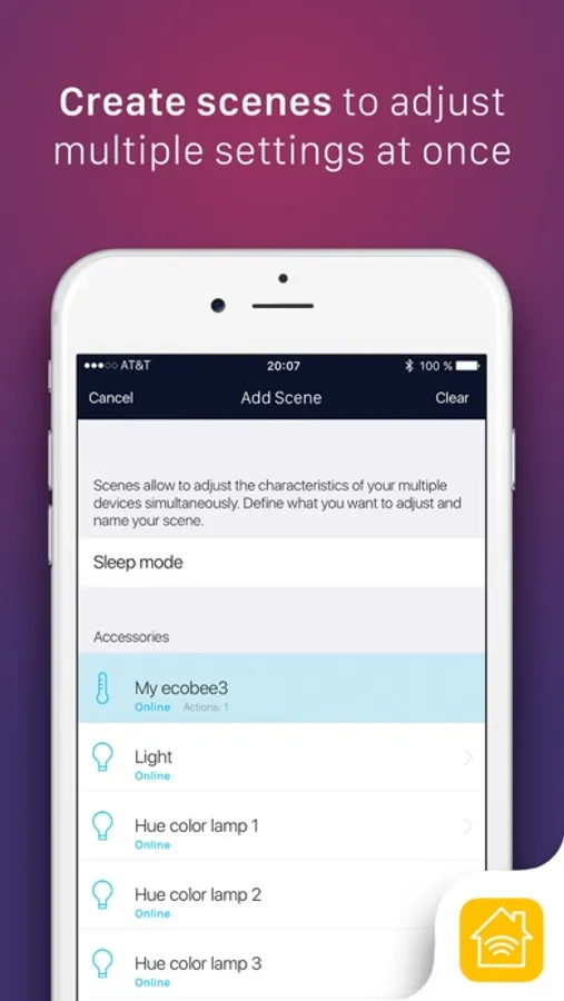• Create scenes to control devices settings in different combinations and to apply them with one tap;