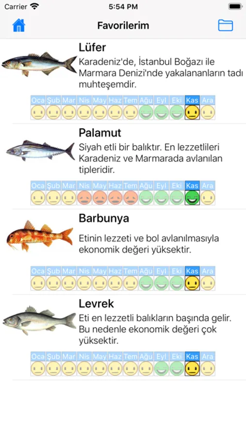 En sevdiğiniz balıklar ile kendi favori listenizi oluşturup, doğrudan sadece bu balıkların takvimine ve bilgilerine erişebilirsiniz.