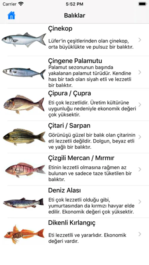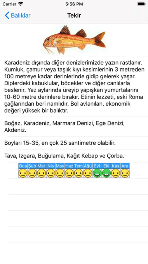Balıklar hakkında genel bilgi, yaşadığı denizlerimiz hangileridir, boyu ve ağırlığı nedir, nasıl pişirilmesi önerilir, hepsi bu uygulamanın içinde.