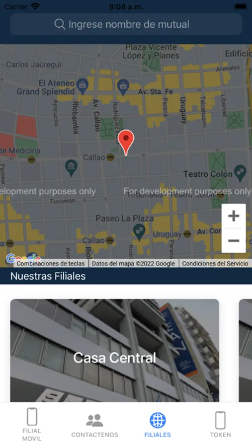 Filiales: Listado de filiales. Podrá visualizar en un mapa y geolocalizar filiales de SMSV.