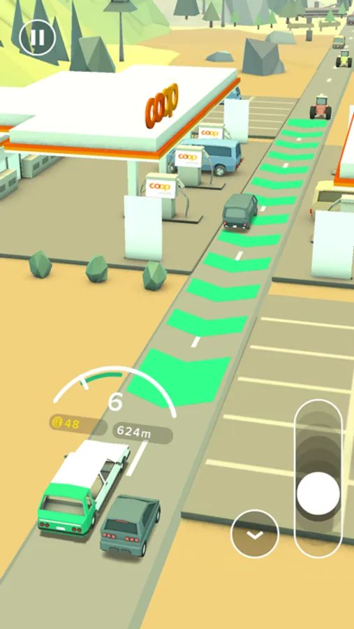 Test your driving with EcoDriver in an endless, randomly generated environment! This exciting game shows you the advantages of driving safely, economically and in an environmentally friendly way. Players must master a dangerous terrain and treacherous traffic situations, all while saving fuel and being aware of what’s up the road. Because you’ll only get ahead if you drive efficiently, so: