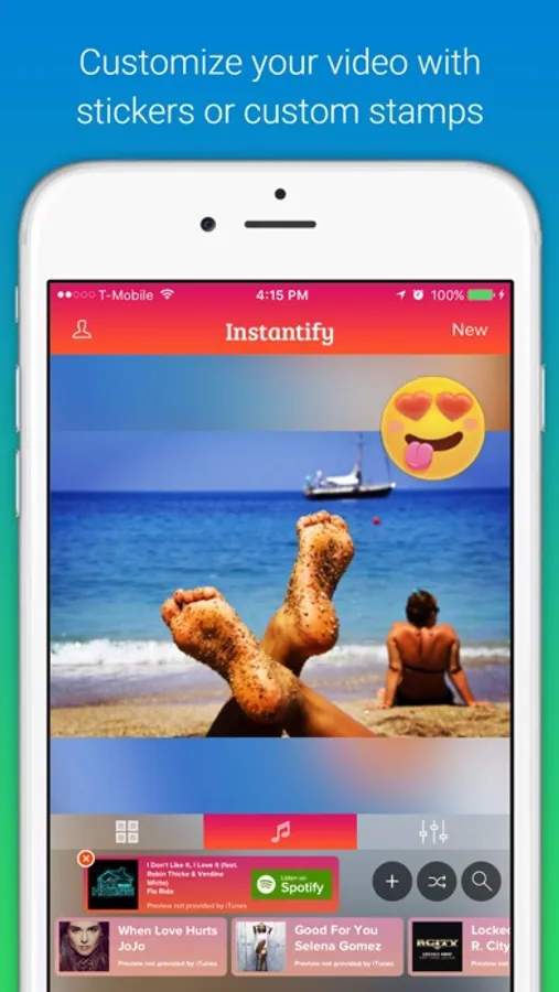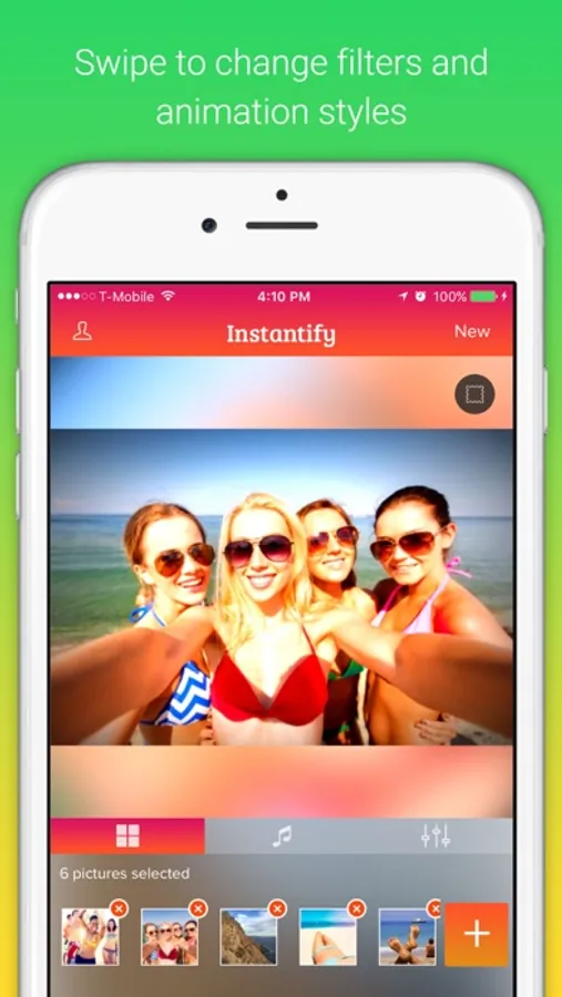 Disclaimer: The instant video creation feature uses GPS in the background to automatically create a beautiful slideshow after you leave an event where you took pictures and notify you via push notification. Be aware that continued use of GPS running in the background can dramatically decrease battery life. You can also use Instantify without GPS in the background.