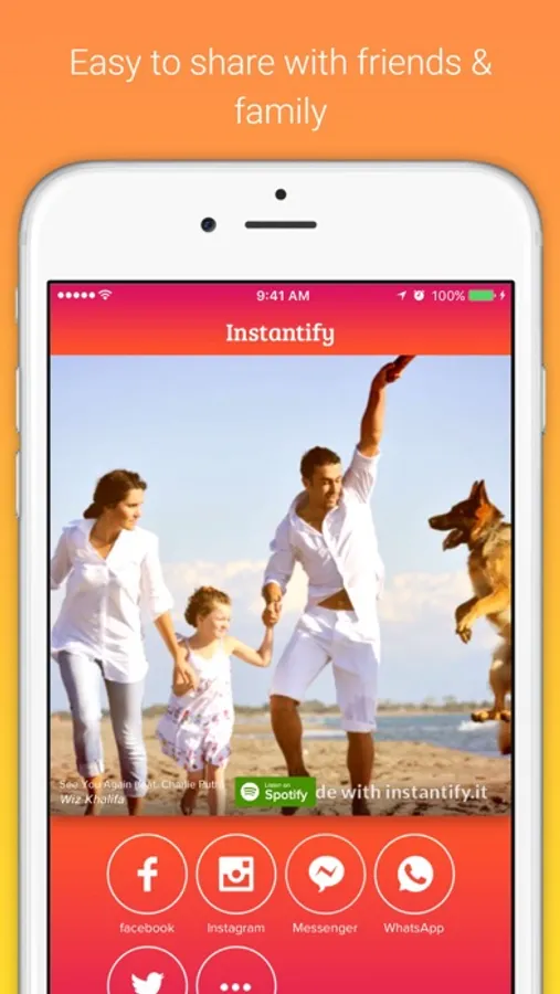 - It automatically creates a video, set to the music of your choosing. With built-in privacy controls (but compatible with Facebook, Twitter and email), you can share with as many or as few friends and family members as you want to. Instantify is the simple, fun, and fast solution for creating your photo or video masterpiece!
