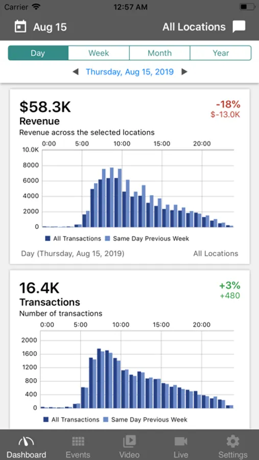 Manage multiple locations from your laptop and phone, anywhere in the world. Switch seamlessly between stores to view revenue, video clips, and transactions. Audit sites from your phone, reducing travel and hours of work. Easy sharing features allow you to share video and data clips with managers or outside authorities.