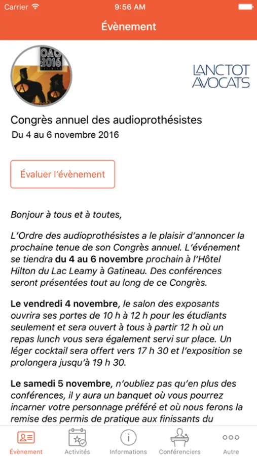 L’application Complément est un ajout majeur à votre expérience lorsque vous assistez aux évènements de votre organisation. Désormais, vous pourrez accéder directement sur votre iPad et iPhone à l’ensemble de vos activités auxquelles vous êtes inscrits.