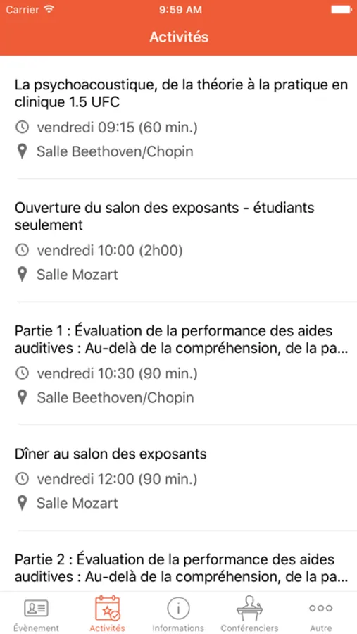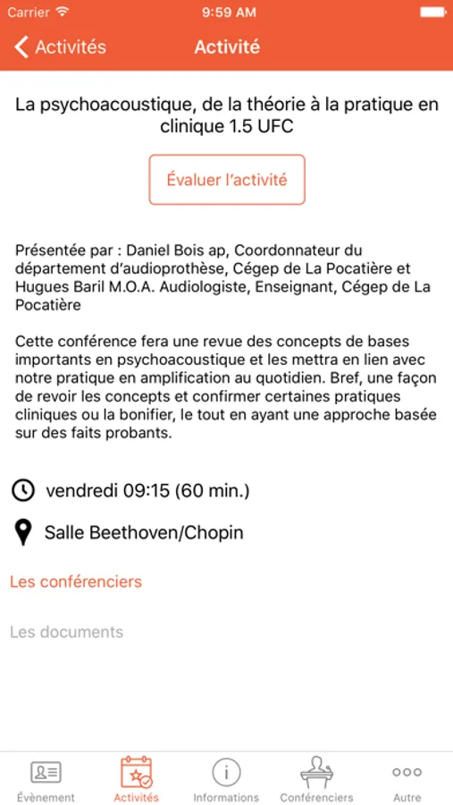 - Consulter la liste de vos conférenciers;