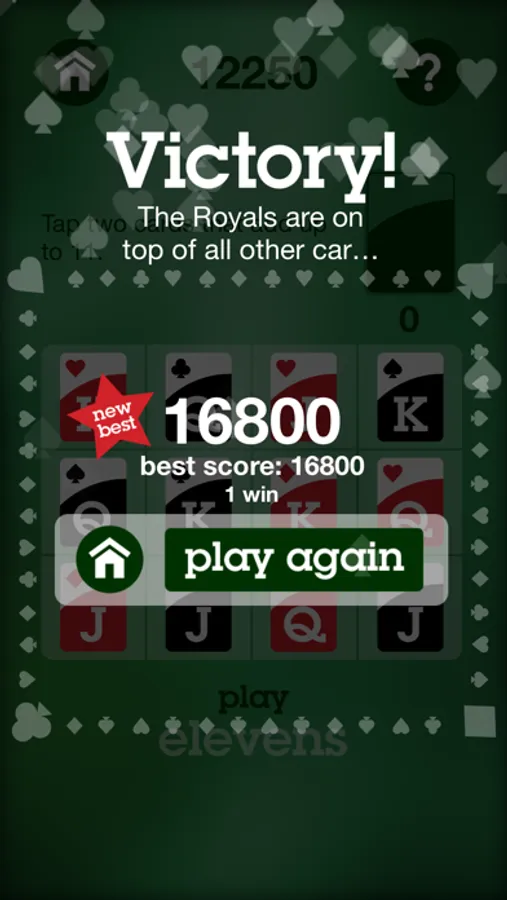Royal Family - A simple addition and suit-matching solitaire card game that can be played using either sums of 11 or 13. You win by playing through the entire deck and removing all the cards from the board.
