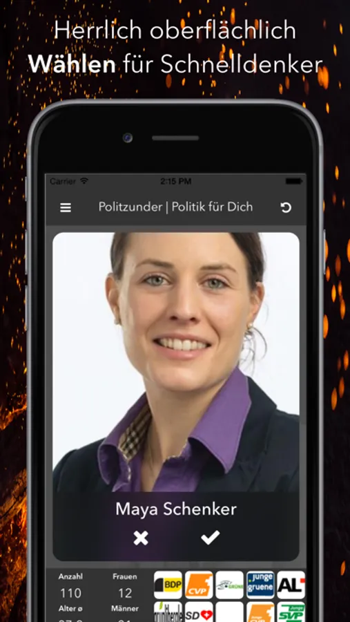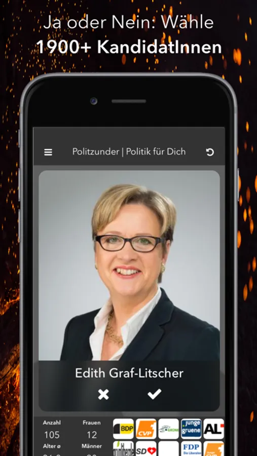 Wir helfen Dir mit Politzunder. Unverschämt oberflächlich findest Du die Kandidatinnen und Kandidaten, die Dir sympathisch sind - ohne durch politische Sachlichkeit verwirrt zu werden. Wenn Du genug Kandidatinnen und Kandidaten beurteilst, so siehst Du welches Deine Lieblingspartei ist.