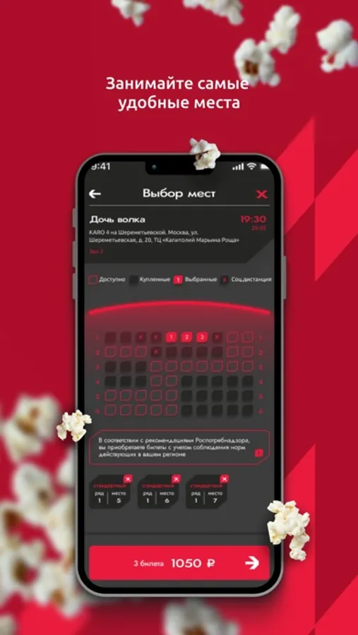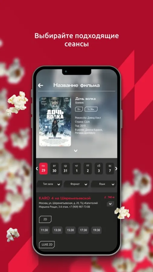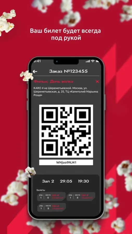 • Билет в вашем приложении - проходите в кинозал без печати билетов