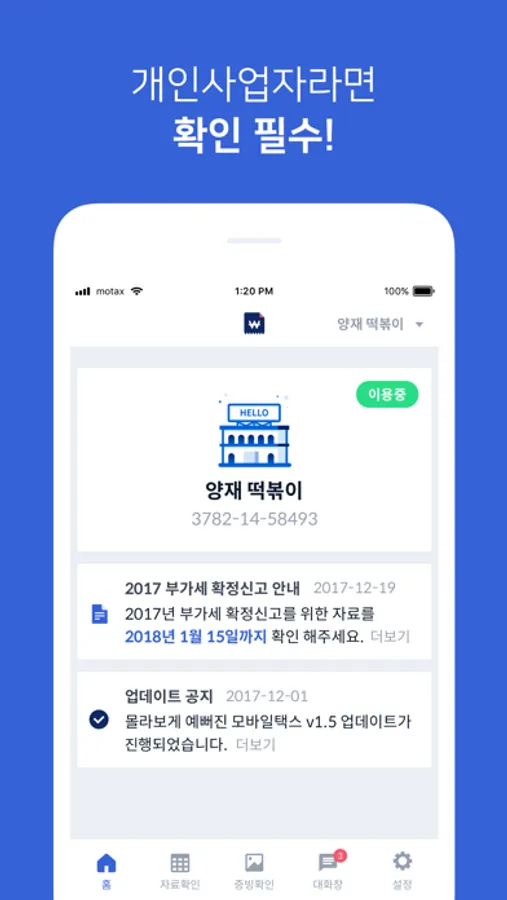 개인사업자의 최고의 절세 수단, 내 손 안의 세무사, 모바일택스를 이용하실 때입니다.