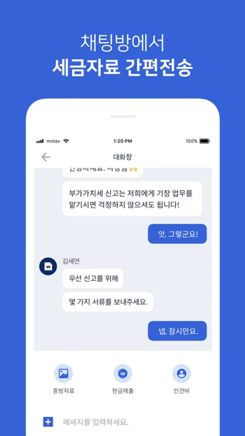 세무고민, 전문가와 어디서든 채팅을 통해 해결하세요.