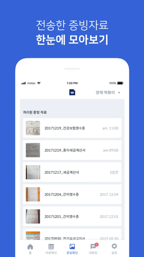 종이증빙만 사진 찍어 보내주시면 나머지는 모바일택스가 처리합니다.