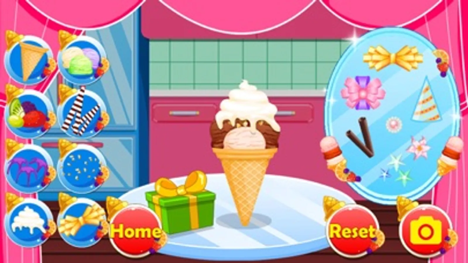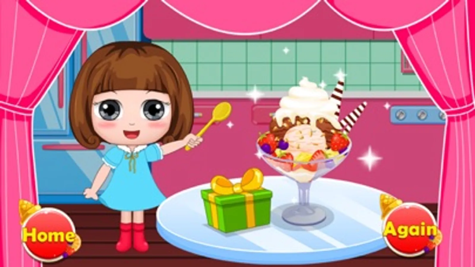 Proverb goes, "haste makes waste", Belle think this sentence is very reasonable. So, before she getting start, she had prepared every necessary materials - coffee, chocolate, milk, toffee, vanilla, baking soda, butter, sugar. Belle mix the ingredients according to the taste of her mother likes. Mom likes chocolate, so Belle added some chocolate; Her mother did not like the taste to be too sweet, then Belle put only a little sugar. Also, her mother often go out to buy ice cream on weekdays, so Belle decide to buy a giant ice cream for her mother. After that Belle added variety of ingredients to it and Belle opened the ice cream maker and just a while a few ice cream balls had come out. It looks so delicious. Belle put the ice cream balls on the cone and start to decorate it with candy, fruits, ribbons and many ingredients. Woo, so nice!
