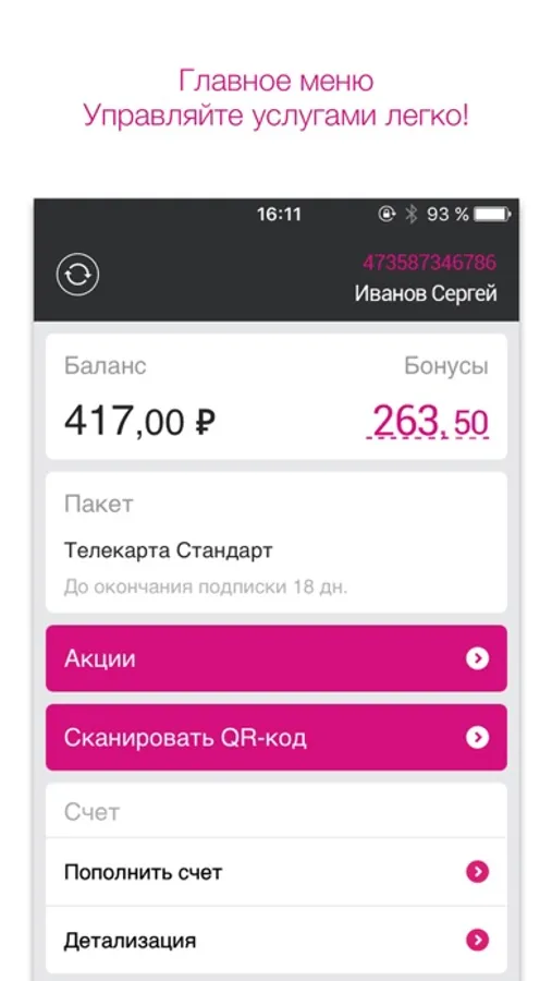• Управлять подпиской и получать информацию о подключенных услугах;