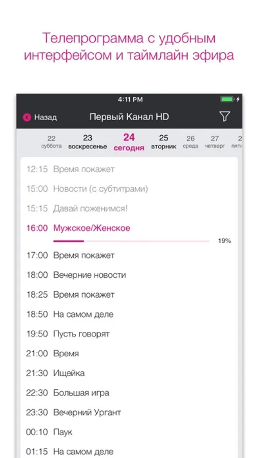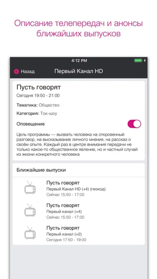 Новая, удобная, простая в использовании телевизионная программа без регистрации, логина и пароля! Быстрый доступ к телепрограмме, даже если Вы не являетесь абонентом «Телекарты». Просто скачайте приложение ТЕЛЕГИД! Расписание любимых телепередач – всегда под рукой!
