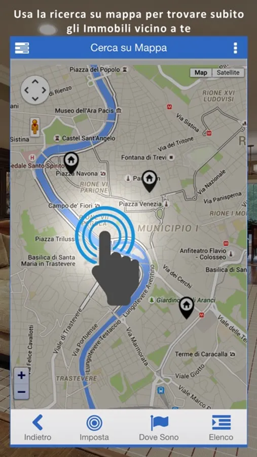 -Ricerca tramite geolocalizzazione cliccando su un qualsiasi punto della mappa