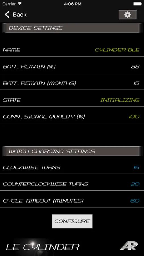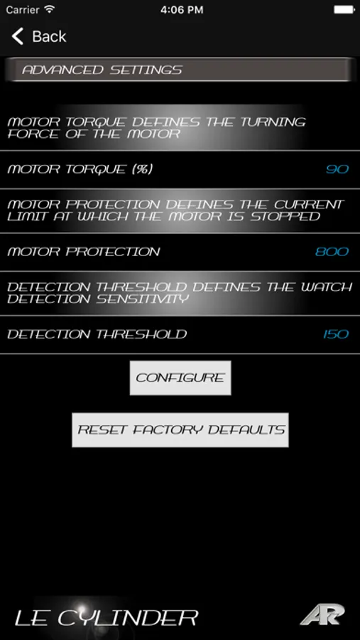 L'application lit et écrit les paramètres du système de remontage en utilisant la technologie Bluetooth basse consommation (Bluetooth Low Energy ou BLE) de l'iPhone.