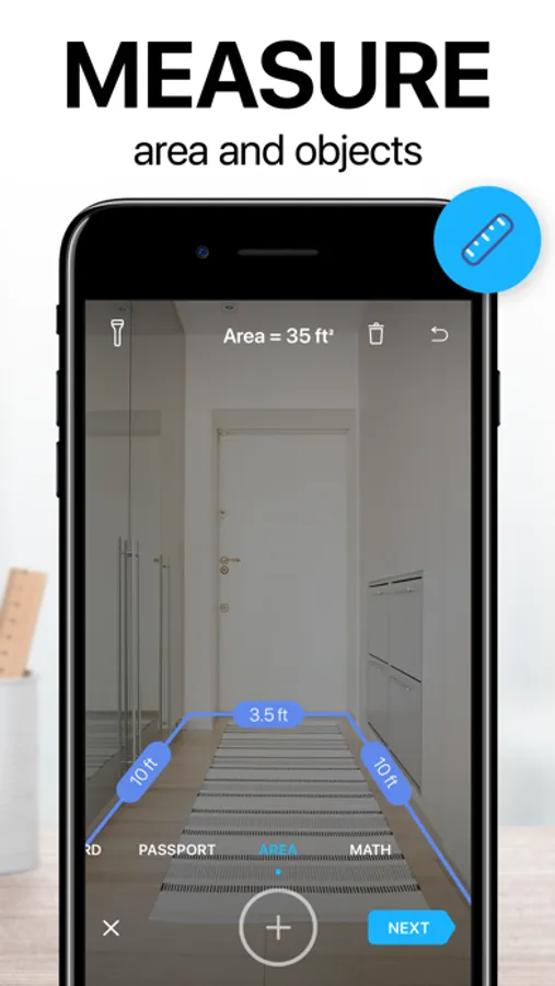 • AREA – measure object length and calculate its area