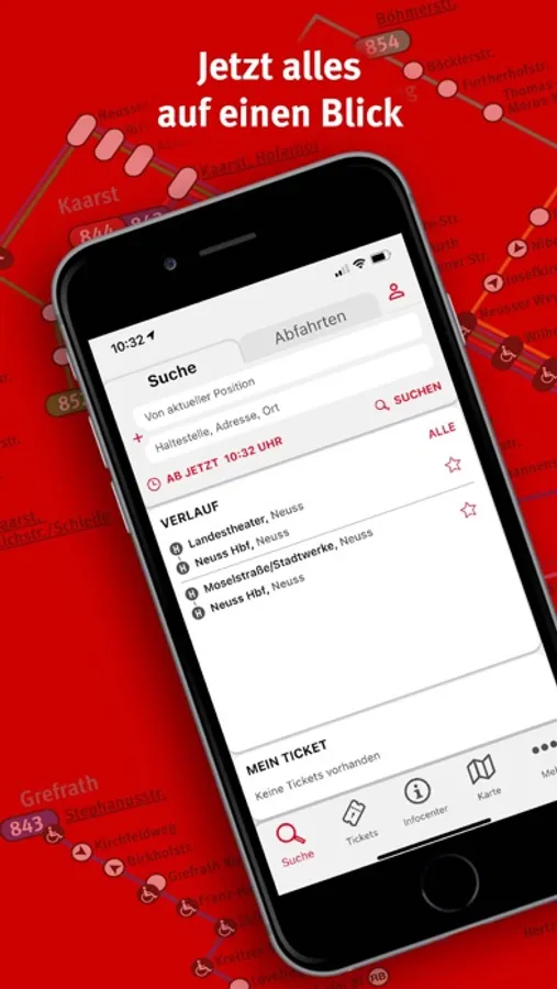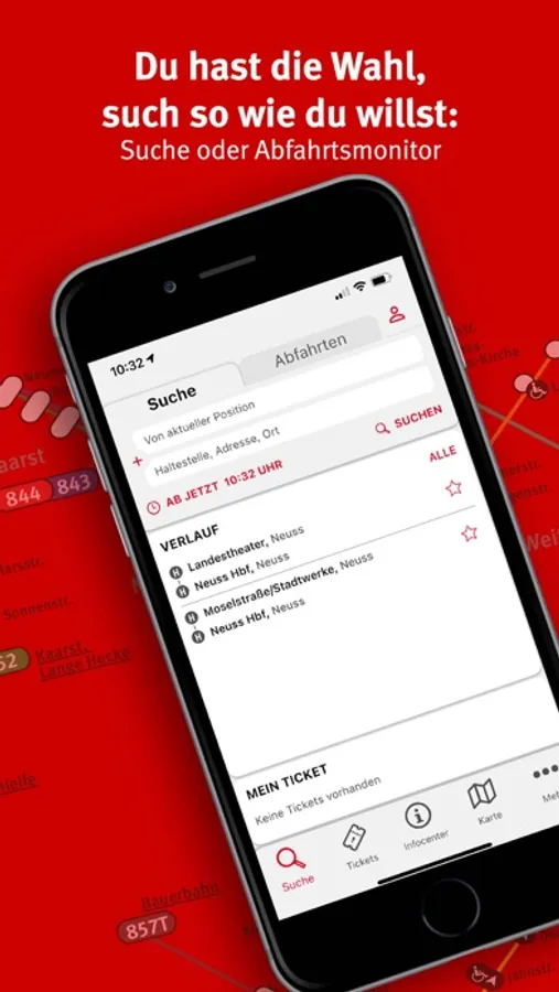 Die neuss mobil App gilt für den Fahrplan der Busse und Bahnen des Neusser ÖPNV sowie für den gesamten Verkehrsverbund-Rhein-Ruhr (VRR). Die App zeigt dir selbstverständlich auch Verbindungen in angrenzende Verkehrsverbünde an.
