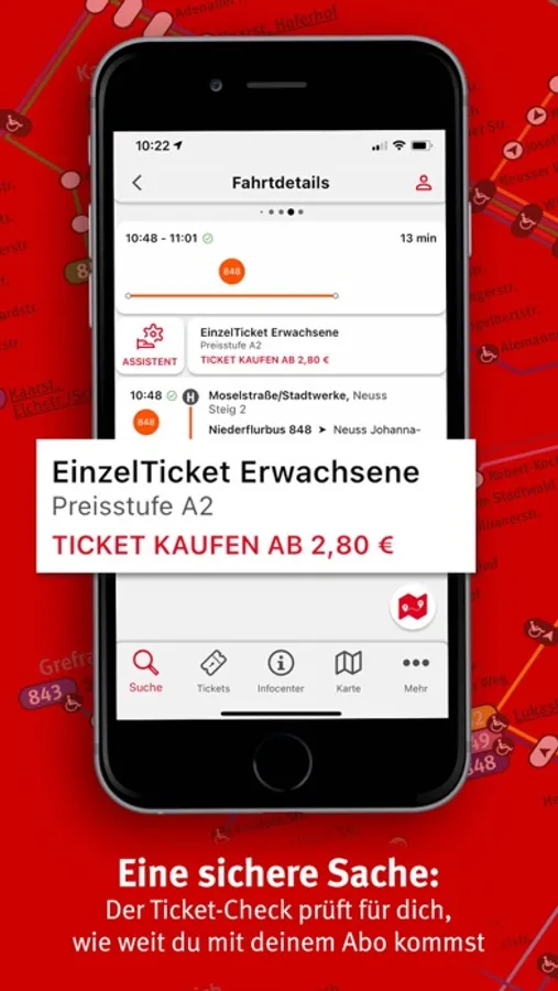 • Tarif-Check: Die App prüft automatisch, ob du für diese Fahrt bereits ein gültiges Ticket besitzt.