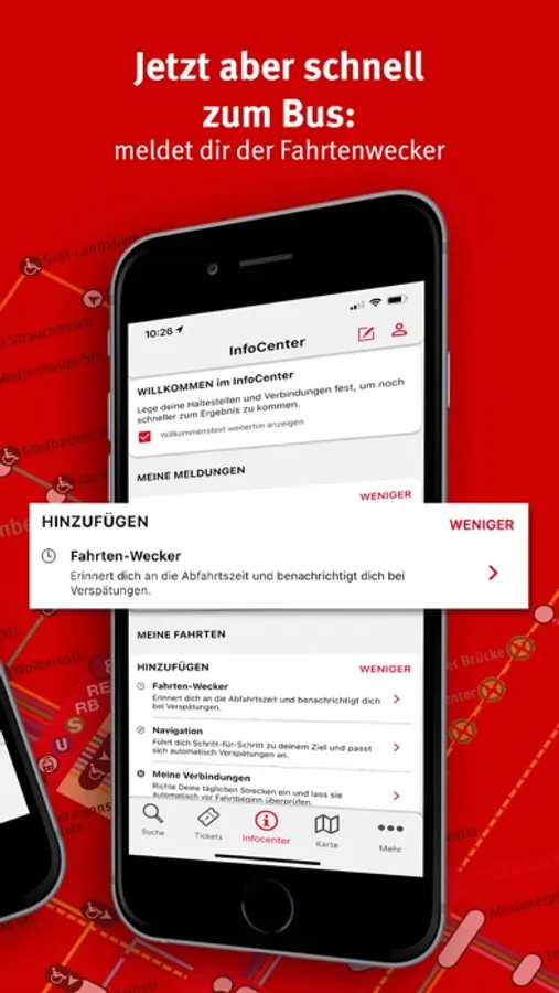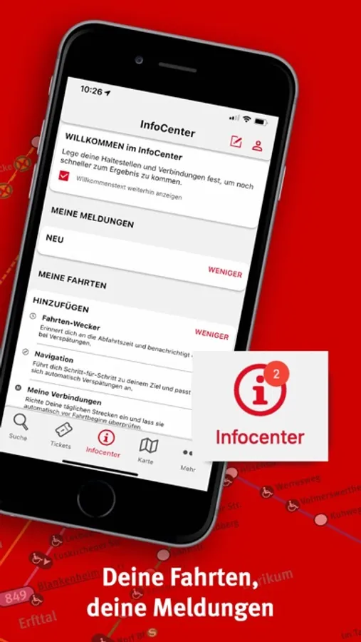 • Persönlicher Bereich: Für regelmäßige Fahrten mit Bus und Bahn kannst du im persönlichen Bereich deine wichtigsten Ziele speichern und erhältst künftig wichtige Informationen auf einen Blick.