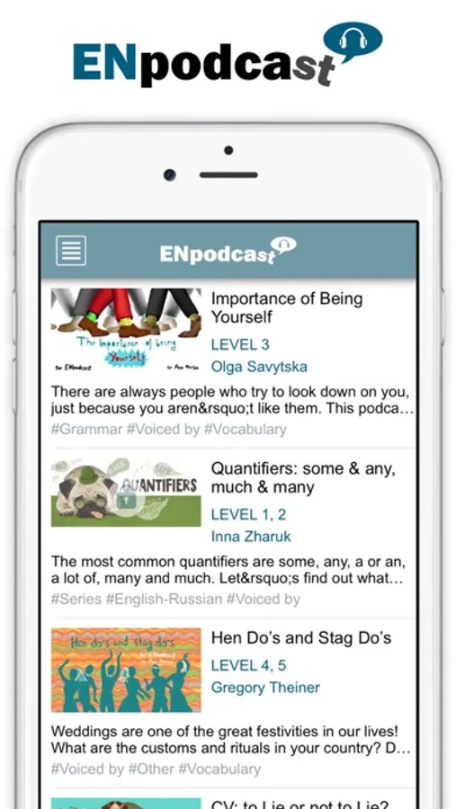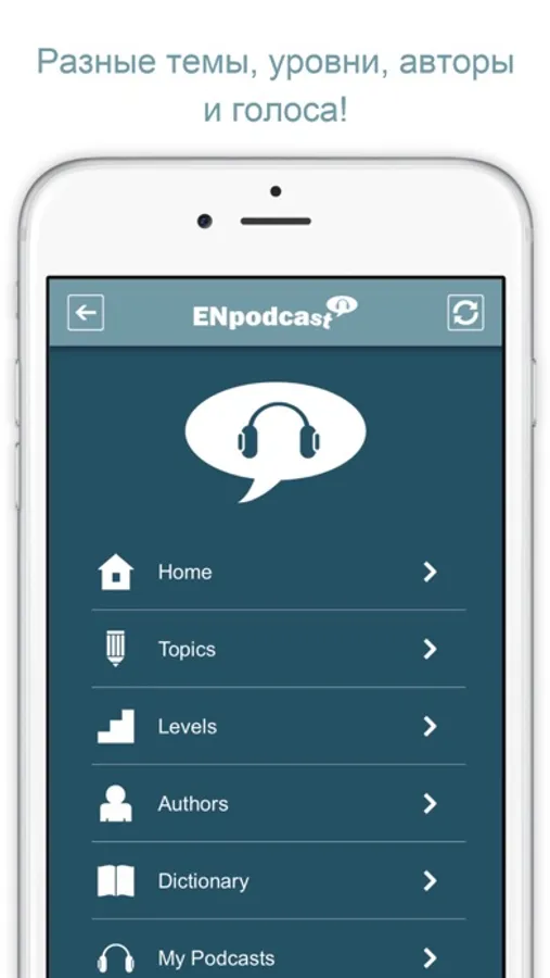 ENpodcast – приложение для изучения и усовершенствования английского языка с помощью подкастов. Постоянно пополняющийся журнал с текстами, озвученными носителями языка.
