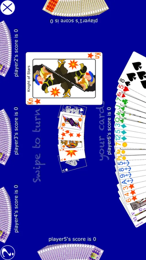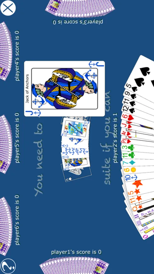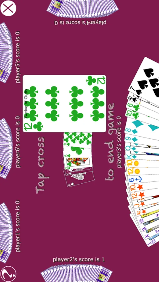 Rickety Kate is a trick taking card game. This means every player tosses in a card and the player with the highest card in the same suite as the first card wins the trick and the cards. But wait! the person with the lowest running score wins. So winning a trick is not necessarily good.