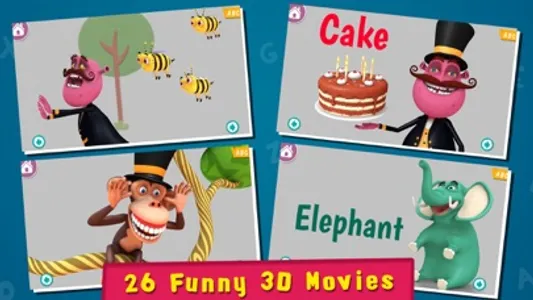 1. 26 adorable and funny story based 3D Magic show movies which will help kids learn 26 letters and 52 words in a most entertaining way.