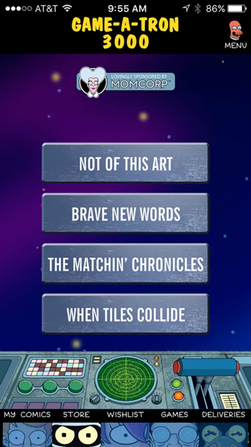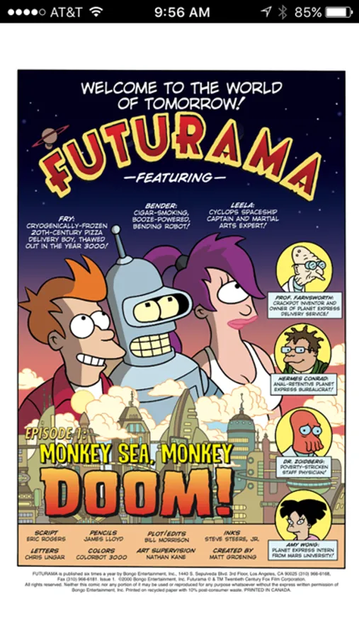 Loaded with laughs, our cloud-based platform, delivers dozens of cosmically comical comics, perplexing puzzles, and astronomical amusements wherever you go via your iPad and iPhone and will automatically sync across all of your oh-so smart iOS devices. Digitally download the newest Planet Express delivery, courtesy of Futuramaland, today!