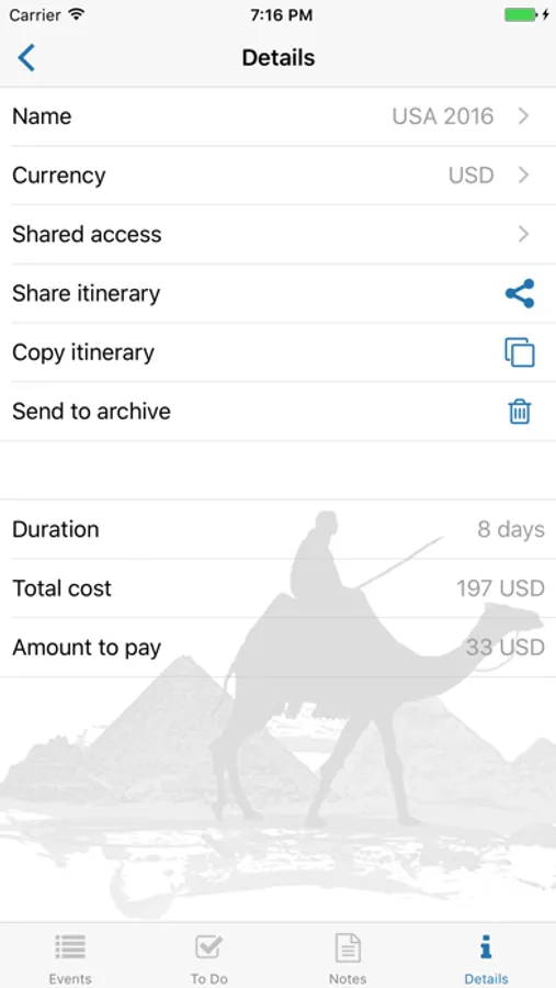- Create itineraries with plans of your trips.