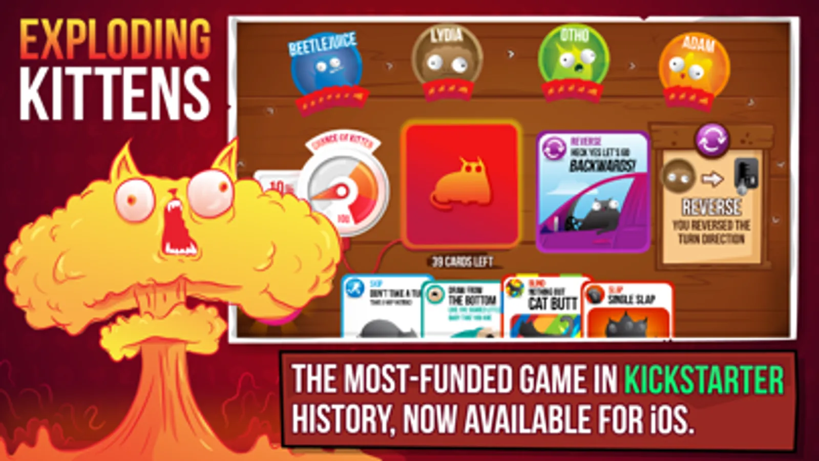 Play the most-funded game in Kickstarter history anywhere with the Exploding Kittens® Official mobile game!