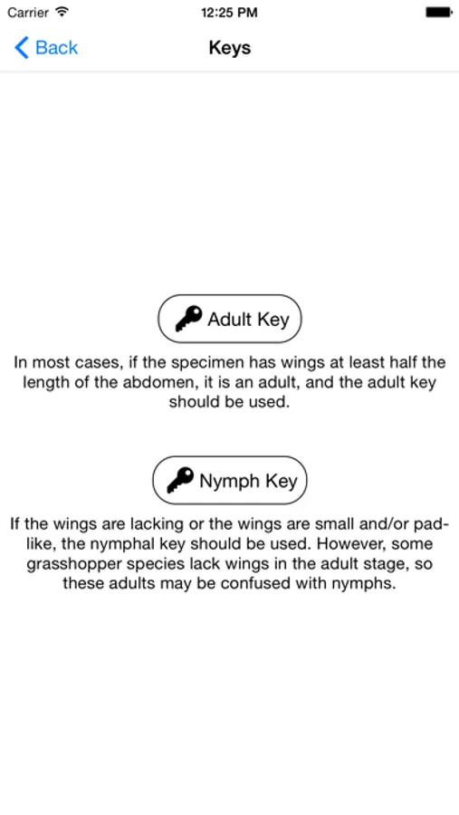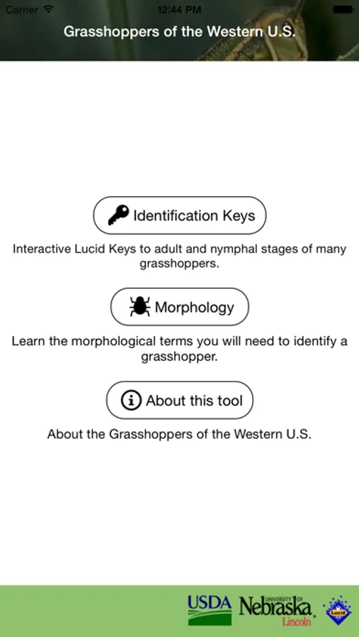 The Grasshoppers of the Western U.S. Lucid mobile app offers keys to identify both adult and pre-adult stages of many of the most commonly encountered grasshoppers in the western U.S. The adult key facilitates the identification of 76 species of adult grasshoppers. All species included are in the family Acrididae with the exception of one, Brachystola magna, which is in the family Romaleidae. See the keys page if you need help determining whether your specimen is an adult or a nymph. The Lucid mobile keys were created by USDA-APHIS-ITP through collaboration with the USDA-APHIS-PPQ-S&T CPHST Phoenix Lab, USDA-APHIS-PPQ Colorado SPHD Office, University of Nebraska at Lincoln, Chadron State College, and Identic Pty. Ltd. (Lucid).